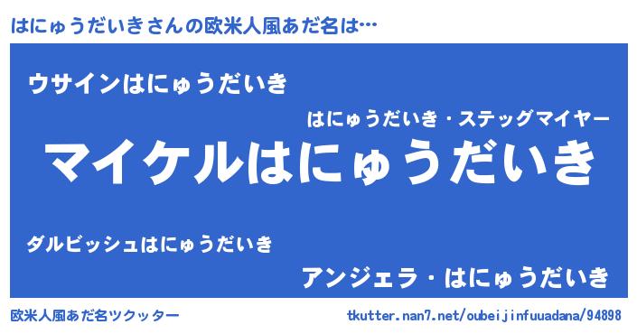 | 男性向けラノベタイトル風あだ名 | 『ハニュウダイキアートオンライン』 |