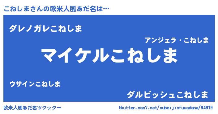 | 男性向けラノベタイトル風あだ名 | 『こねしまの憂鬱』 |