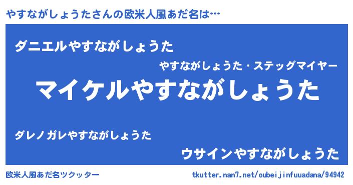 | 男性向けラノベタイトル風あだ名 | 『ヤスナガショウタアートオンライン』 |