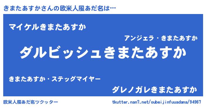 | ヘコむあだ名 | 『きまたあすか(爆)』『きまにゅー』 |