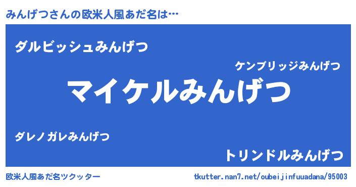 | 男性向けラノベタイトル風あだ名 | 『みんげつの憂鬱』『ミンゲツスレイヤー』 |