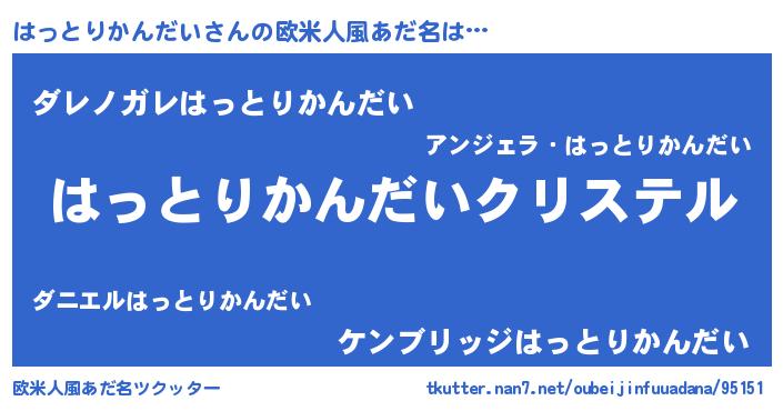 | 男性向けラノベタイトル風あだ名 | 『やはりはっとりかんだいの青春ラブコメはまちがっている 』 |