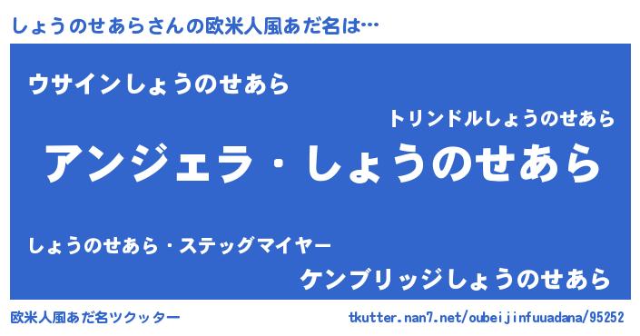 | 意味不明あだ名 | 『とにかく怪しいしょうのせあら』 |
