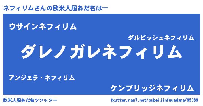 | 意味不明あだ名 | 『住所不定無職ネフィリム(39歳)』 |