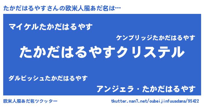 | ファンタジー風あだ名 | 『エターナルタカダハルヤスー』 |