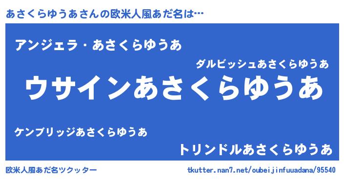 | ポケモン風あだ名 | 『ヒアサクラユウア』『アサゴンZ』 |