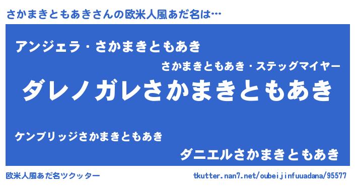 | 男性向けラノベタイトル風あだ名 | 『この素晴らしい世界にさかまきともあきを!』 |