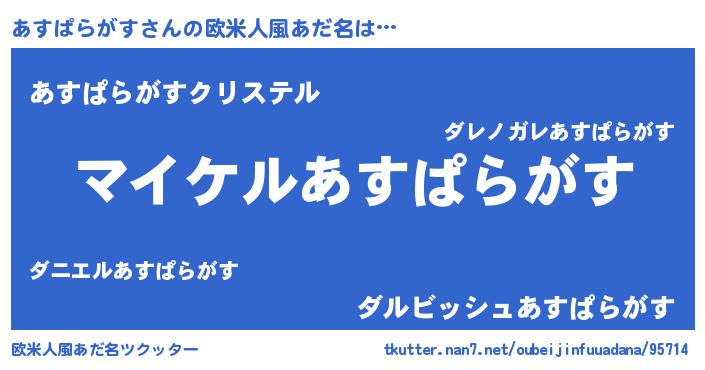| 男性向けラノベタイトル風あだ名 | 『あすぱらがすの憂鬱』 |