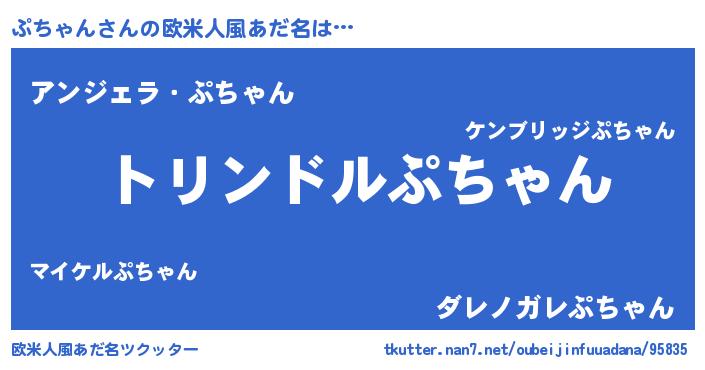 | 意味不明あだ名 | 『めかぶ科ぷちゃん属』『自称ぷちゃん』 |