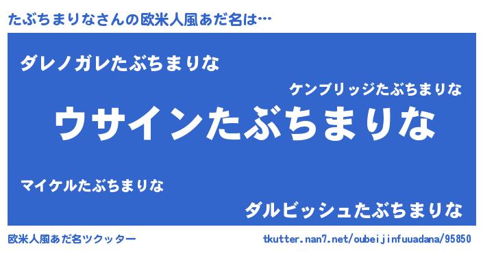 | 男性向けラノベタイトル風あだ名 | 『たぶちまりなの嫁は女の子じゃないと思った?』 |