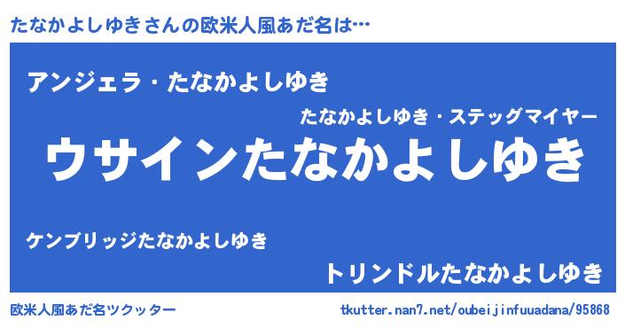 | 女子向けラノベタイトル風あだ名 | 『たなかよしゆきの卵を拾いまして』 |