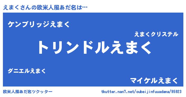 | 男性向けラノベタイトル風あだ名 | 『えまく~年齢イコール彼女いない歴の魔法使い~』 |