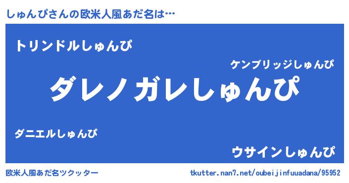 | 男性向けラノベタイトル風あだ名 | 『魔弾の王としゅんぴ』 |