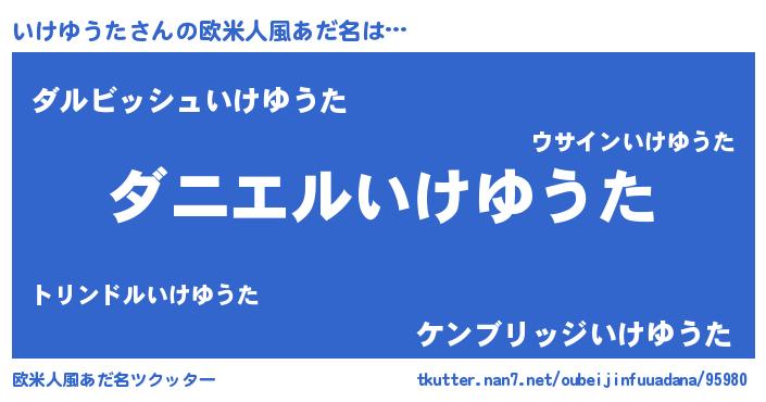 | 男性向けラノベタイトル風あだ名 | 『おまえをオタクにしてやるから、俺をいけゆうたにしてくれ! 』 |
