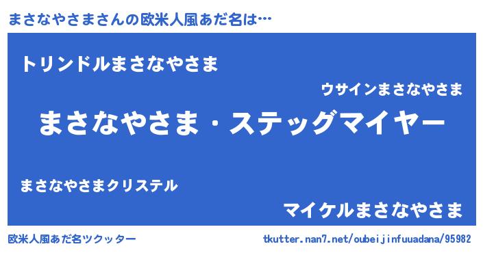 | 男性向けラノベタイトル風あだ名 | 『うちのまさなやさまが世界を掌握している!』 |