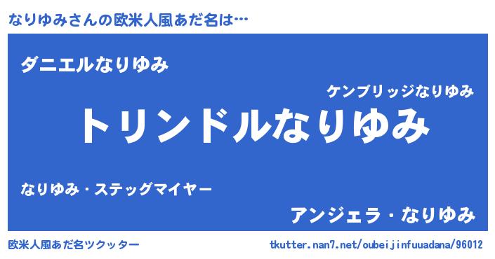 | 男性向けラノベタイトル風あだ名 | 『なりゆみ~年齢イコール彼女いない歴の魔法使い~』 |