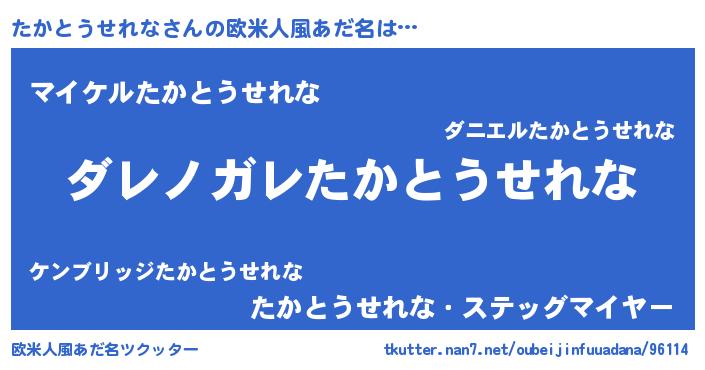 | 男性向けラノベタイトル風あだ名 | 『この素晴らしい世界にたかとうせれなを!』 |