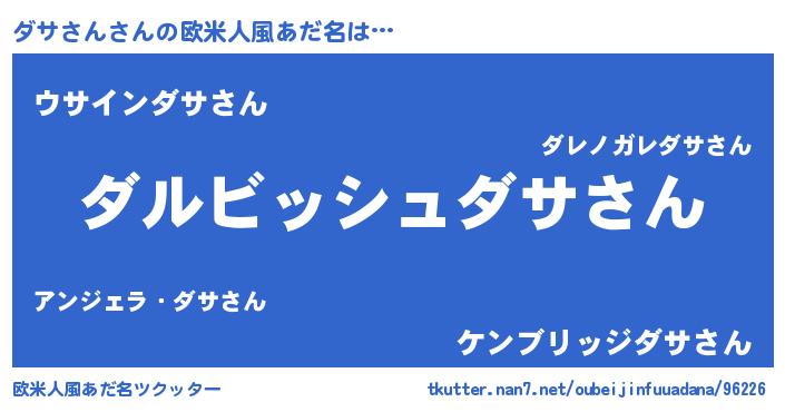 | 男性向けラノベタイトル風あだ名 | 『ダサさんという概念が存在しない退屈な世界 』 |
