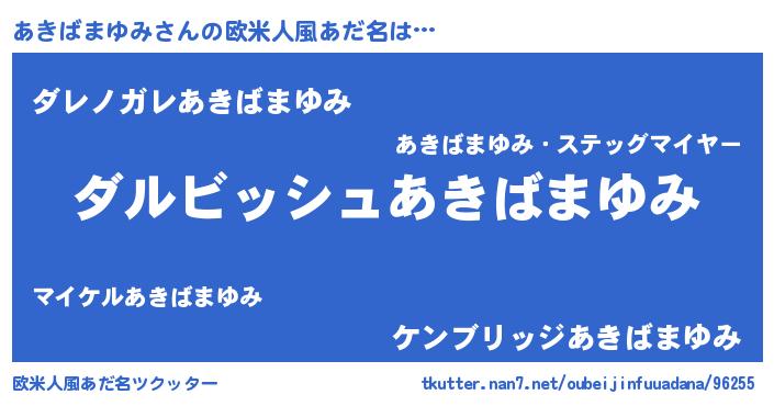 | 女子向けラノベタイトル風あだ名 | 『異世界で失敗しない100のあきばまゆみ』 |