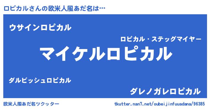 | 男性向けラノベタイトル風あだ名 | 『ロピカルの憂鬱』 |