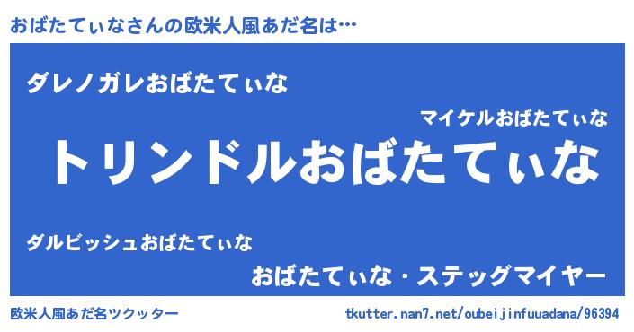 | 男性向けラノベタイトル風あだ名 | 『転生したらおばたてぃなだった件』 |