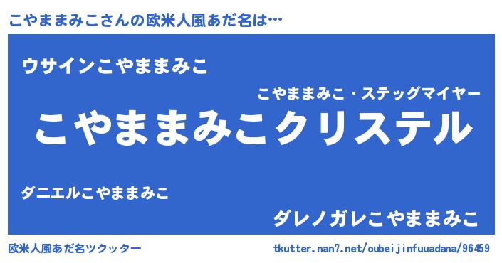 | 肩書あだ名 | 『こやままみこ国家主席』 |