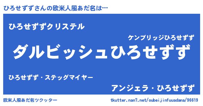 | 男性向けラノベタイトル風あだ名 | 『ひろせずずという概念が存在しない退屈な世界 』 |
