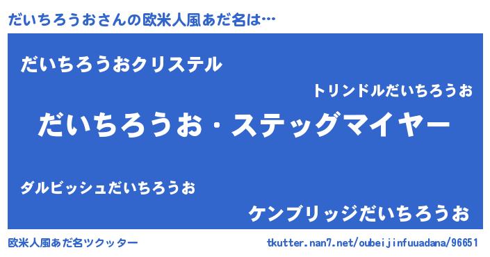 | 男性向けラノベタイトル風あだ名 | 『うちのだいちろうおが世界を掌握している!』 |
