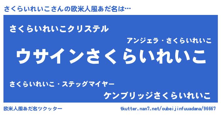 | 男性向けラノベタイトル風あだ名 | 『さくらいれいこの嫁は女の子じゃないと思った?』 |