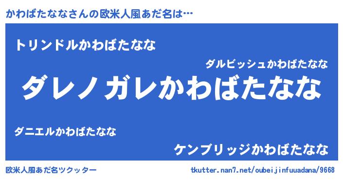 | 意味不明あだ名 | 『住所不定無職かわばたなな(4歳)』 |