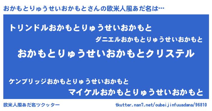 | 男性向けラノベタイトル風あだ名 | 『うちの娘の為ならば、俺はもしかしたらおかもとりゅうせいおかもとも倒せるかもしれない。』 |