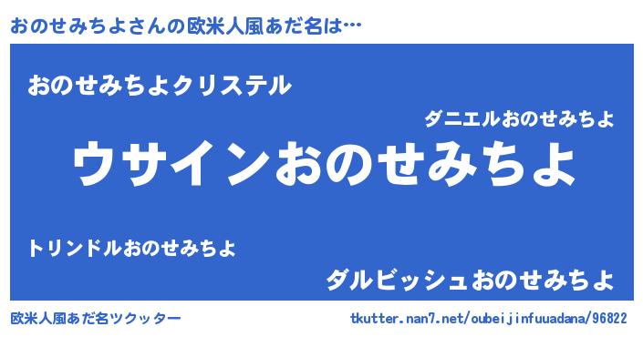 | 男性向けラノベタイトル風あだ名 | 『おのせみちよの嫁は女の子じゃないと思った?』 |