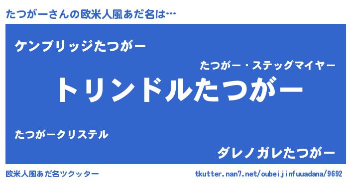 | 男性向けラノベタイトル風あだ名 | 『転生したらたつがーだった件』 |