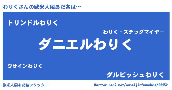 | ヘコむあだ名 | 『わりく(笑)』『わりぷりん』『牛乳』 |