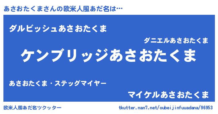 | 女子向けラノベタイトル風あだ名 | 『あさおたくまアンティーク』 |