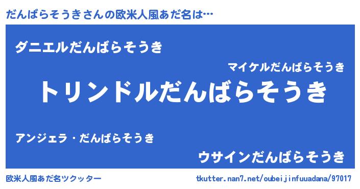 | 女子向けラノベタイトル風あだ名 | 『だんばらそうきの玉の輿計画!』 |