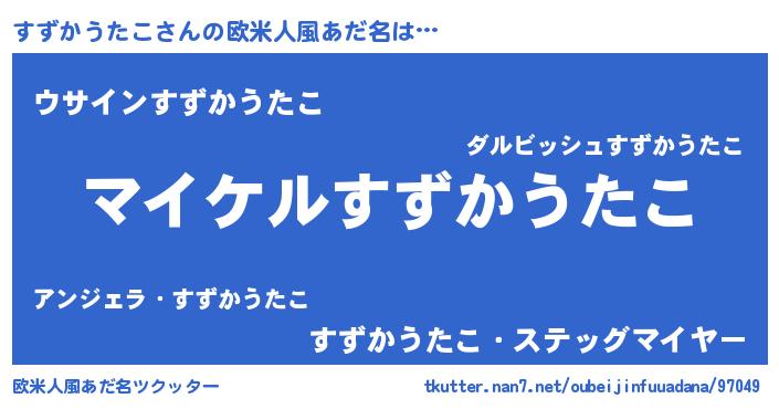 | 男性向けラノベタイトル風あだ名 | 『スズカウタコアートオンライン』 |