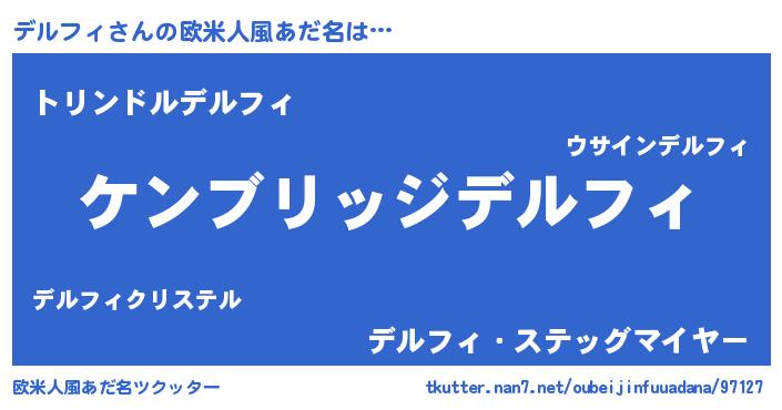 | 男性向けラノベタイトル風あだ名 | 『Re:デルフィから始める異世界生活』 |