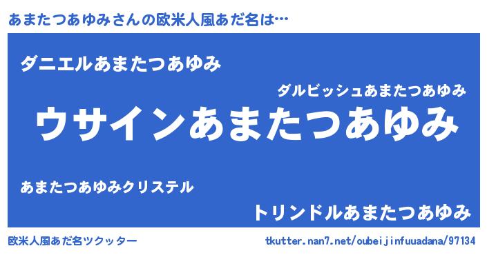 | 男性向けラノベタイトル風あだ名 | 『あまたつあゆみの嫁は女の子じゃないと思った?』 |