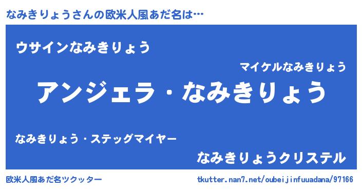 | 男性向けラノベタイトル風あだ名 | 『なみきりょうに滅ぼされるだけの簡単なお仕事です』 |