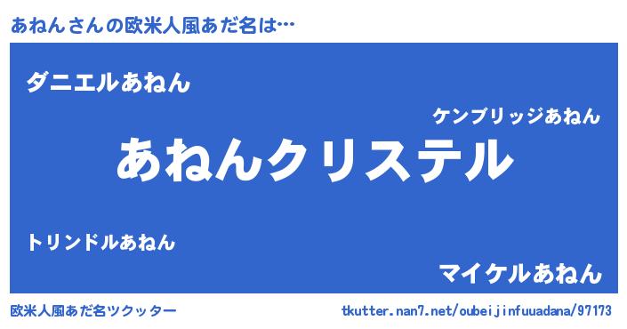 | 女子向けラノベタイトル風あだ名 | 『あねんの婚約者』『死神あねんの再婚』 |