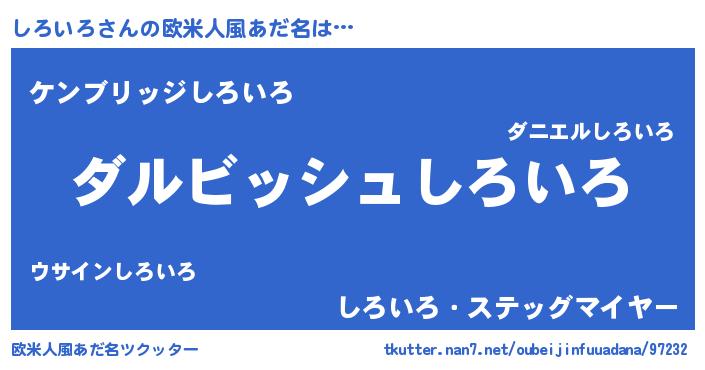 | ヘコむあだ名 | 『しろいろ(苦笑)』『しろを』『豆乳』 |