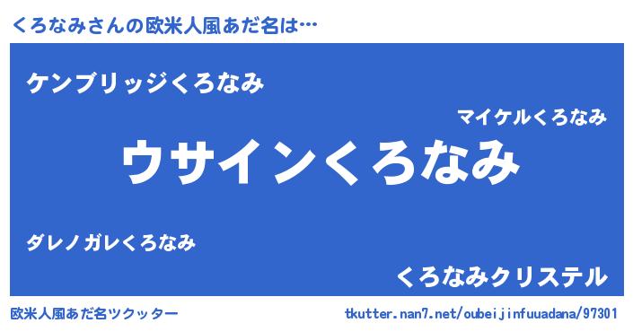 | 男性向けラノベタイトル風あだ名 | 『くろなみの嫁は女の子じゃないと思った?』 |