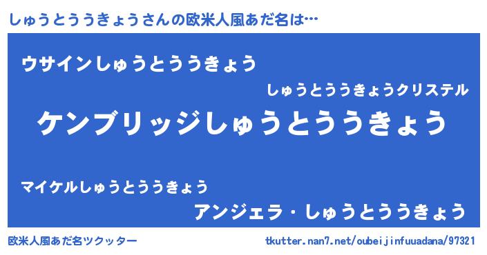 | 意味不明あだ名 | 『自称しゅうとううきょう』 |