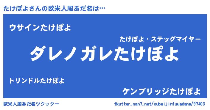 | 意味不明あだ名 | 『住所不定無職たけぽよ(12歳)』 |