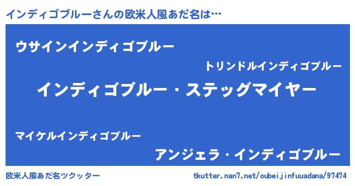 | 男性向けラノベタイトル風あだ名 | 『うちのインディゴブルーが世界を掌握している!』 |