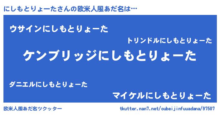 | 男性向けラノベタイトル風あだ名 | 『魔法科高校のにしもとりょーた』 |