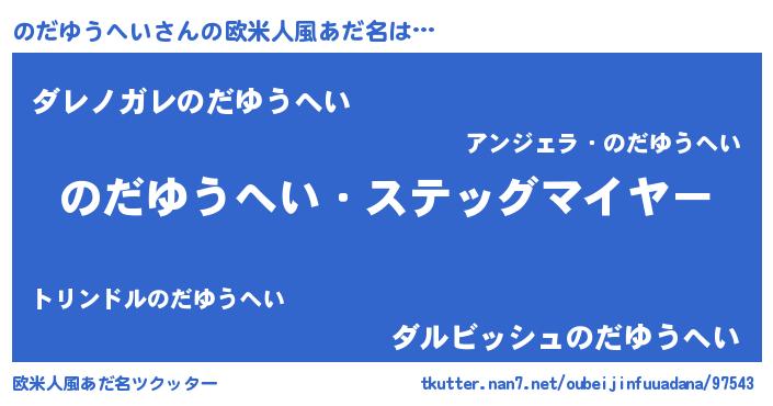 | 男性向けラノベタイトル風あだ名 | 『うちののだゆうへいが世界を掌握している!』 |