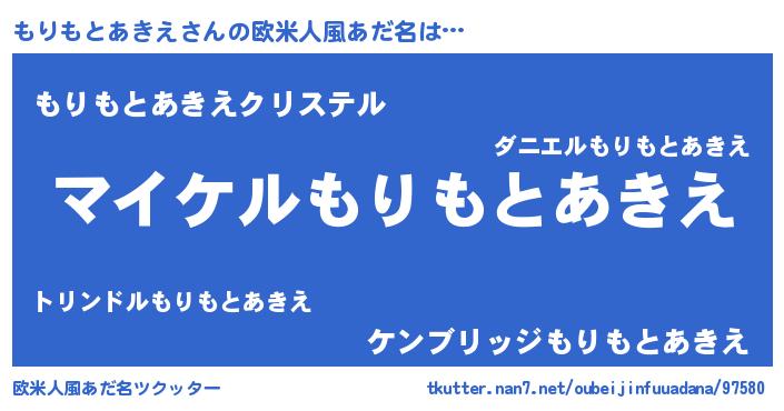 | 男性向けラノベタイトル風あだ名 | 『モリモトアキエアートオンライン』 |