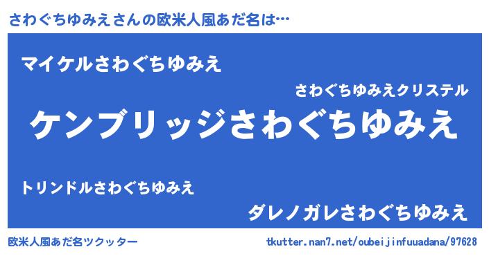 | 男性向けラノベタイトル風あだ名 | 『Re:さわぐちゆみえから始める異世界生活』 |